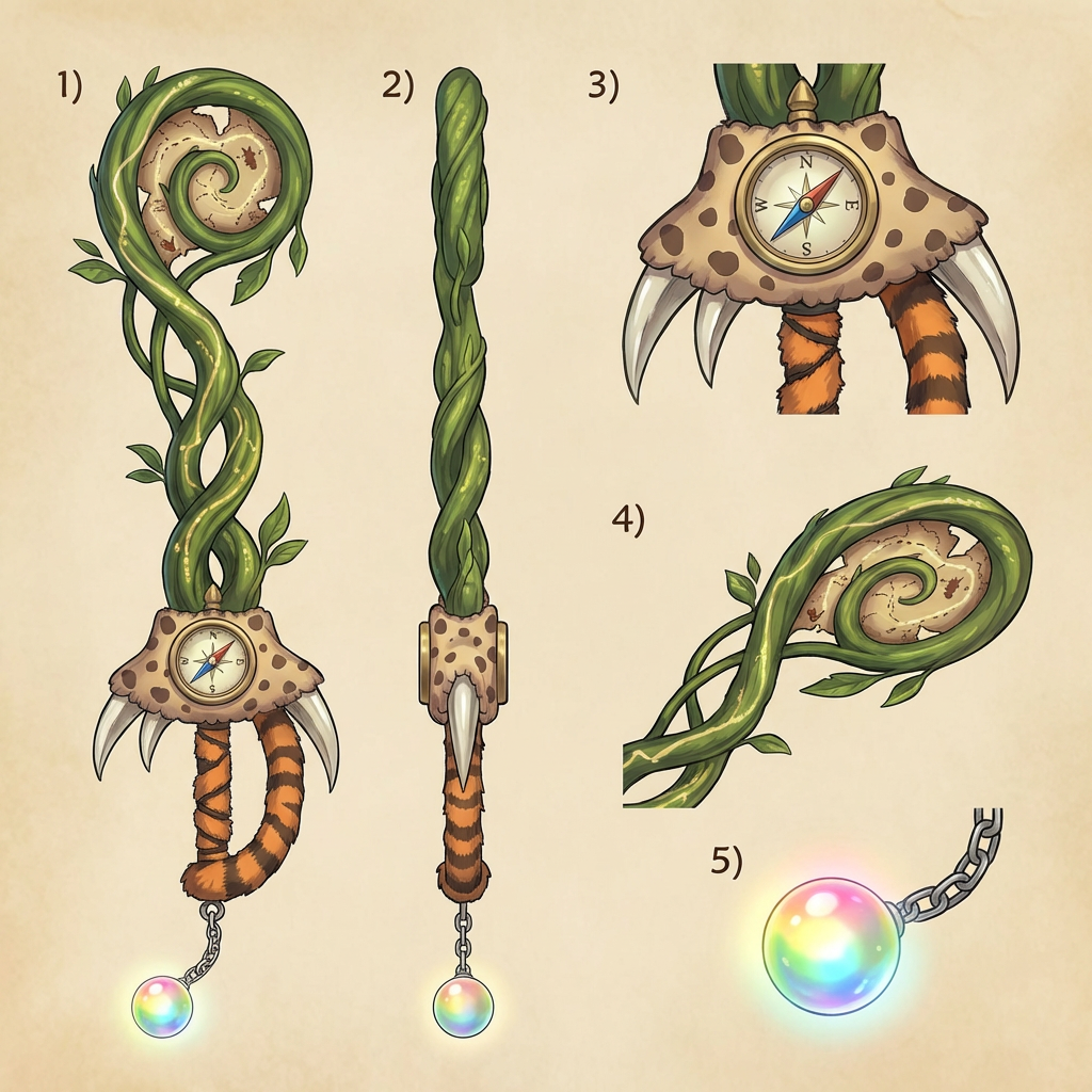 剑身 (Blade):一条盘旋而上的、坚韧的【丛林藤蔓】,藤蔓的路径,又仿佛是一张...复杂的【探险藏宝图】。