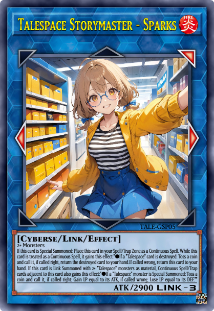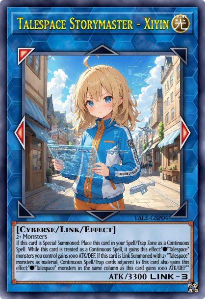 This card can attack a number of times each Battle Phase, up to the number of turns. If this card battles, it gains 500 ATK for each attack declared this turn, during the Damage Step only. If 3 or more attacks have been declared this turn (Quick Effect): You can banish this card; destroy all monsters your opponent controls. During the Battle Phase, "Talespace" monsters you control gain the following effects. ●This card is unaffected by your opponent's card effects. ●If this card battles an opponent's monster, that opponent's monster has its effects negated during the Battle Phase only.