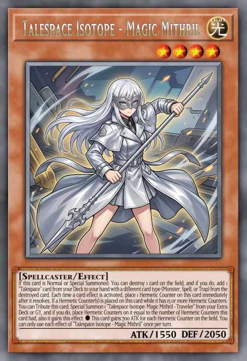 ③:这张卡有15个以上的密契指示物,这张卡被放置密契指示物的场合才能发动。这张卡解放,把额外卡组·墓地1只「幻叙同位体 『魔法秘银·旅者』」特殊召唤,给那张卡放置这张卡原本放置数量的密契指示物。这个效果特殊召唤的怪兽获得以下效果。